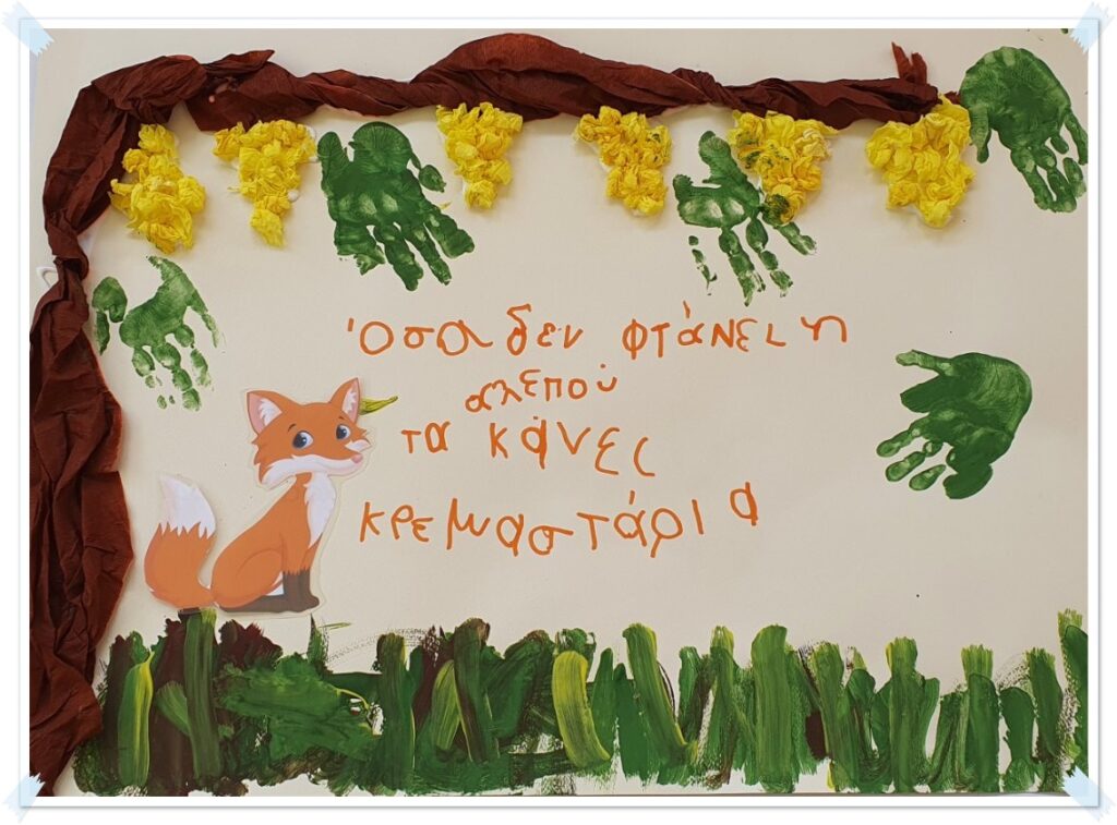 Στις “Χαρούμενες Πασχαλίτσες”, αγαπάμε να μετατρέπουμε τις ιστορίες σε εμπειρίες! Μέσα από το θεατρικό παιχνίδι, τα παιδιά γίνονται οι ήρωες του μύθου, η αλεπού, το αμπέλι, τα σταφύλια, ακόμα και ο ήλιος ή ο άνεμος που τη βλέπουν να προσπαθεί.